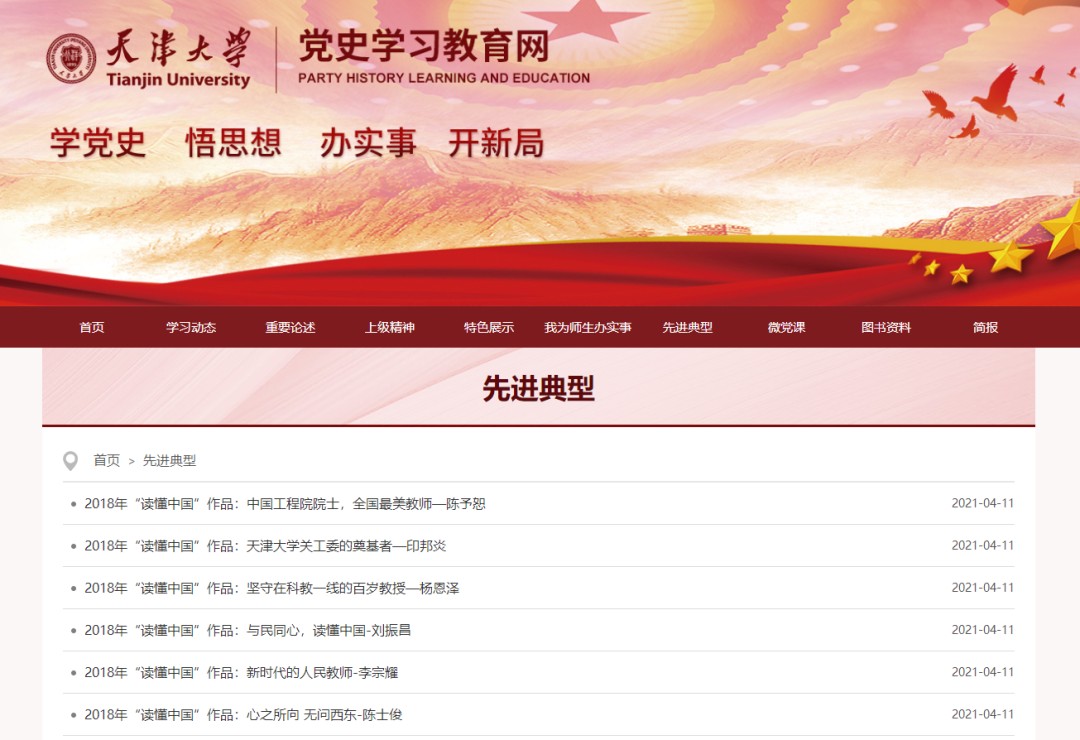 天津大學(xué)黨史學(xué)習(xí)教育網(wǎng)刊登紅色資源